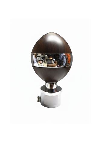 Design: Sculpted egg-shaped body with polished center band and wooden top/bottom