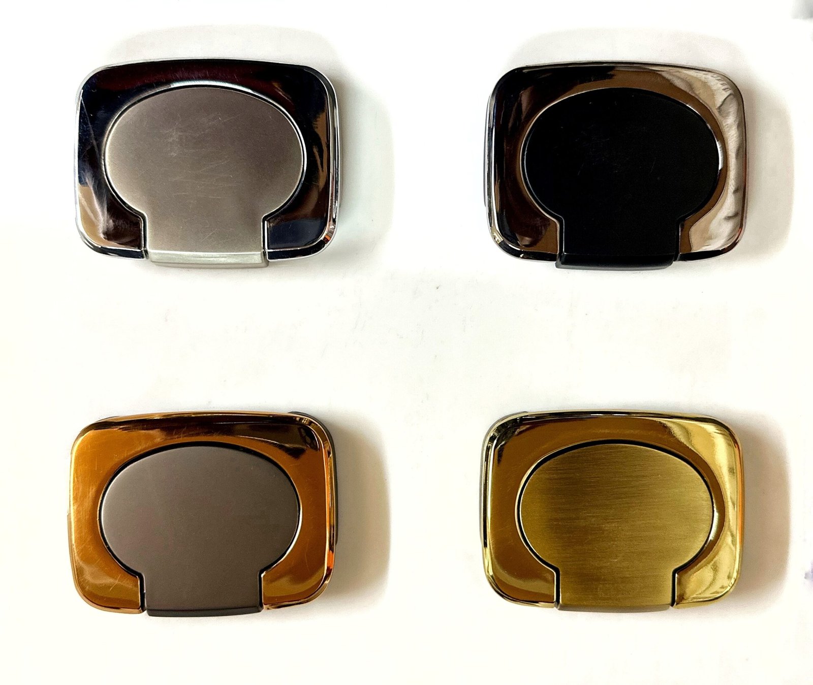Design: Square shape with rounded cut-out center for a minimalist look