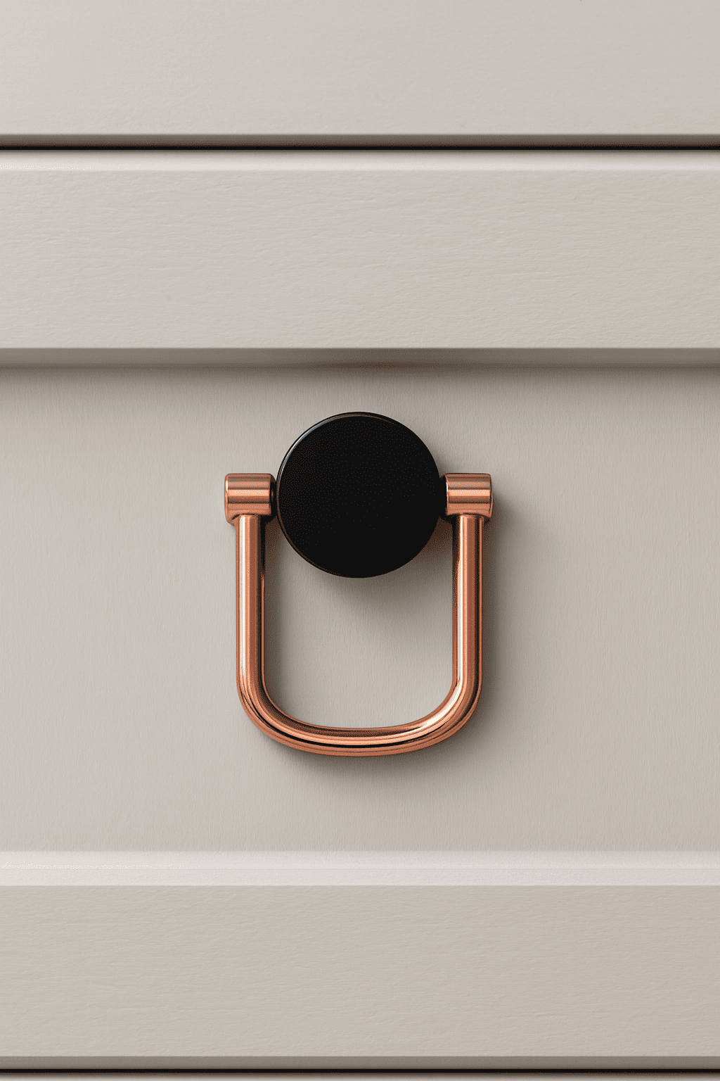 U-Shape Drawer Pull Handle with Round Base Plate – Rose Gold & Black Finish/HD-BF/0491